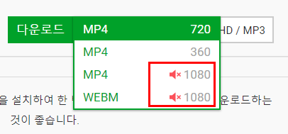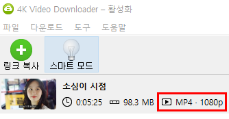 저는 MP4 확장자로 1080p의 가장 좋은 해상도로 다운로드 하였습니다.