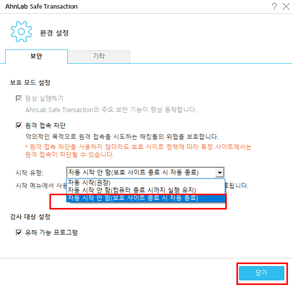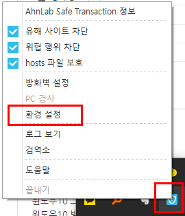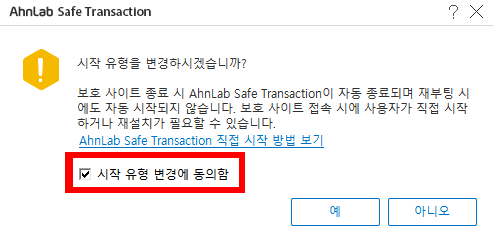 AhnLab Safe Transaction 자동시작/종료 설정 방법