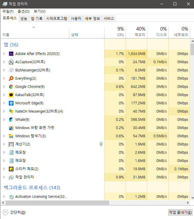 PC가 천천히 버벅거리면서 느려지거나 CPU 점유율이나 메모리 점유율이 높아질 때는