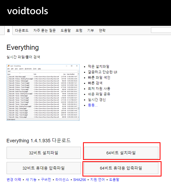 Everything 실시간 파일/폴더 검색 작은 설치파일 깔끔하고 단순한 UI 빠른 파일 색인 빠른 검색 최저 자원 사용 쉬운 파일 공유 실시간 갱신 등등... Everything 1.4.1.935 다운로드 32비트 설치파일 64비트 설치파일 32비트 휴대용 압축파일 64비트 휴대용 압축파일 변경 이력새 기능구버전라이선스SHA256지원 언어도움말