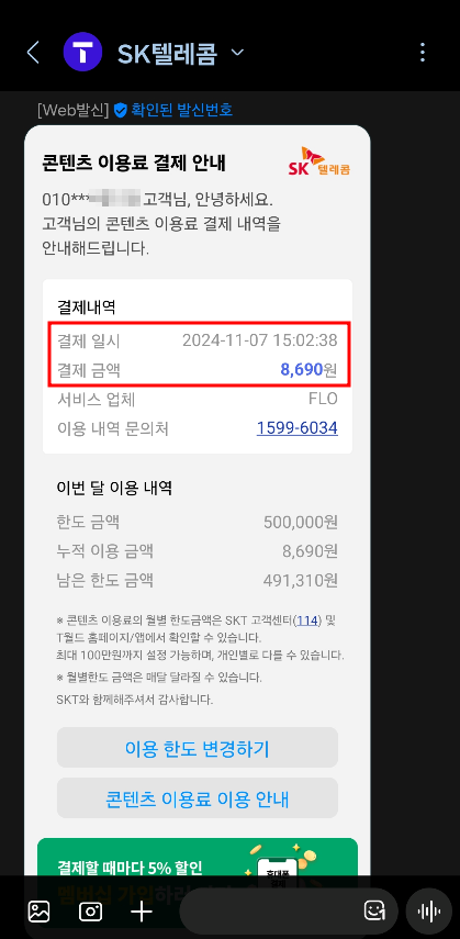 그러다 결제 당일.... 다음과 같은 문자메세지를 수신하게 됩니다