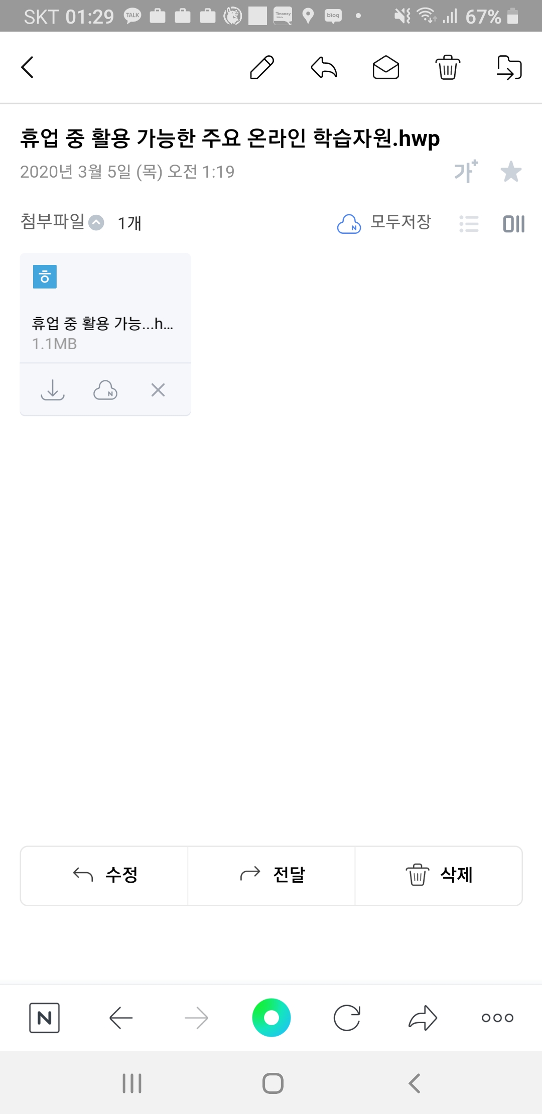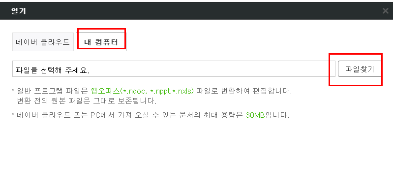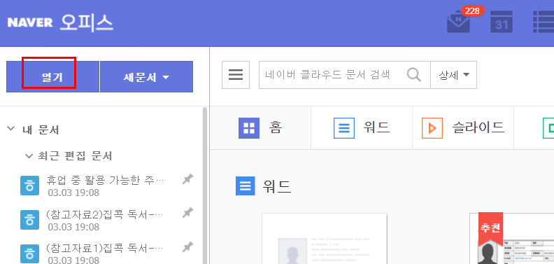 파일이 있는 곳을 찾아 파일을 오픈하게 되면 네이버 워드로 문서가 열리는데