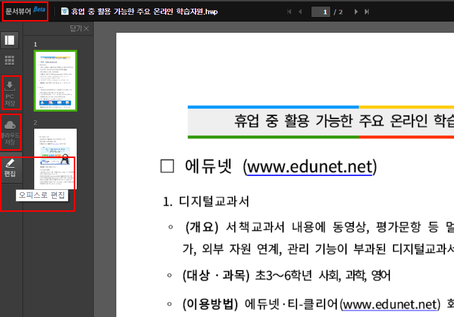 단순한 뷰어가 아닌 문서를 편집 가능한 상태로 오픈이 됩니다.