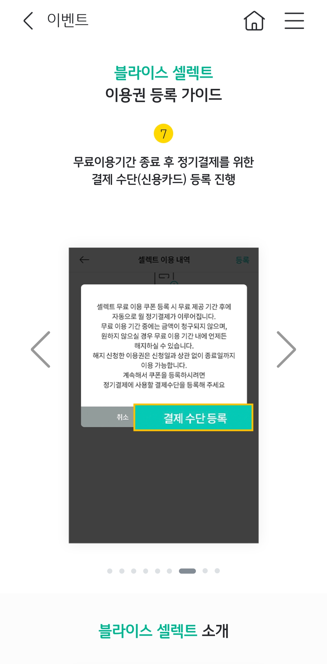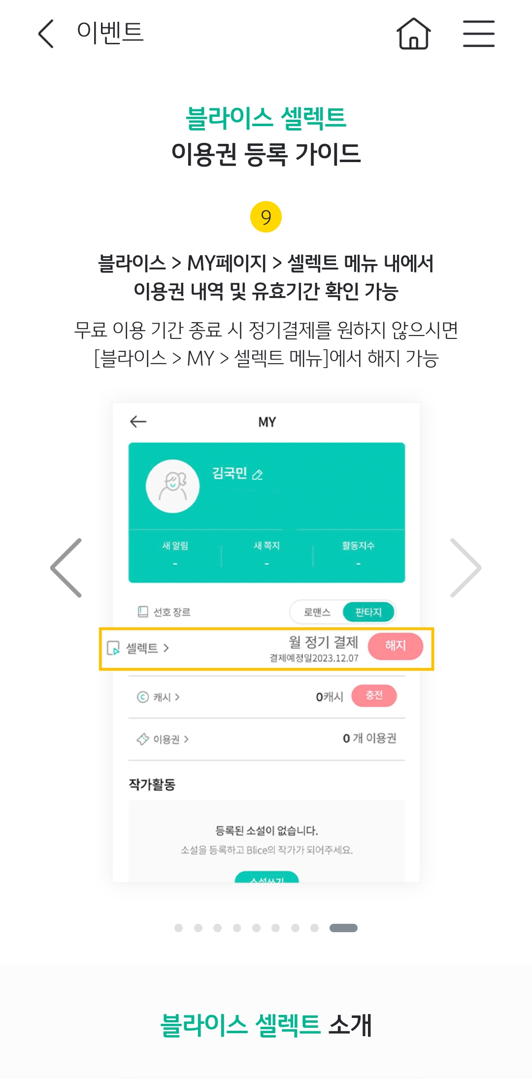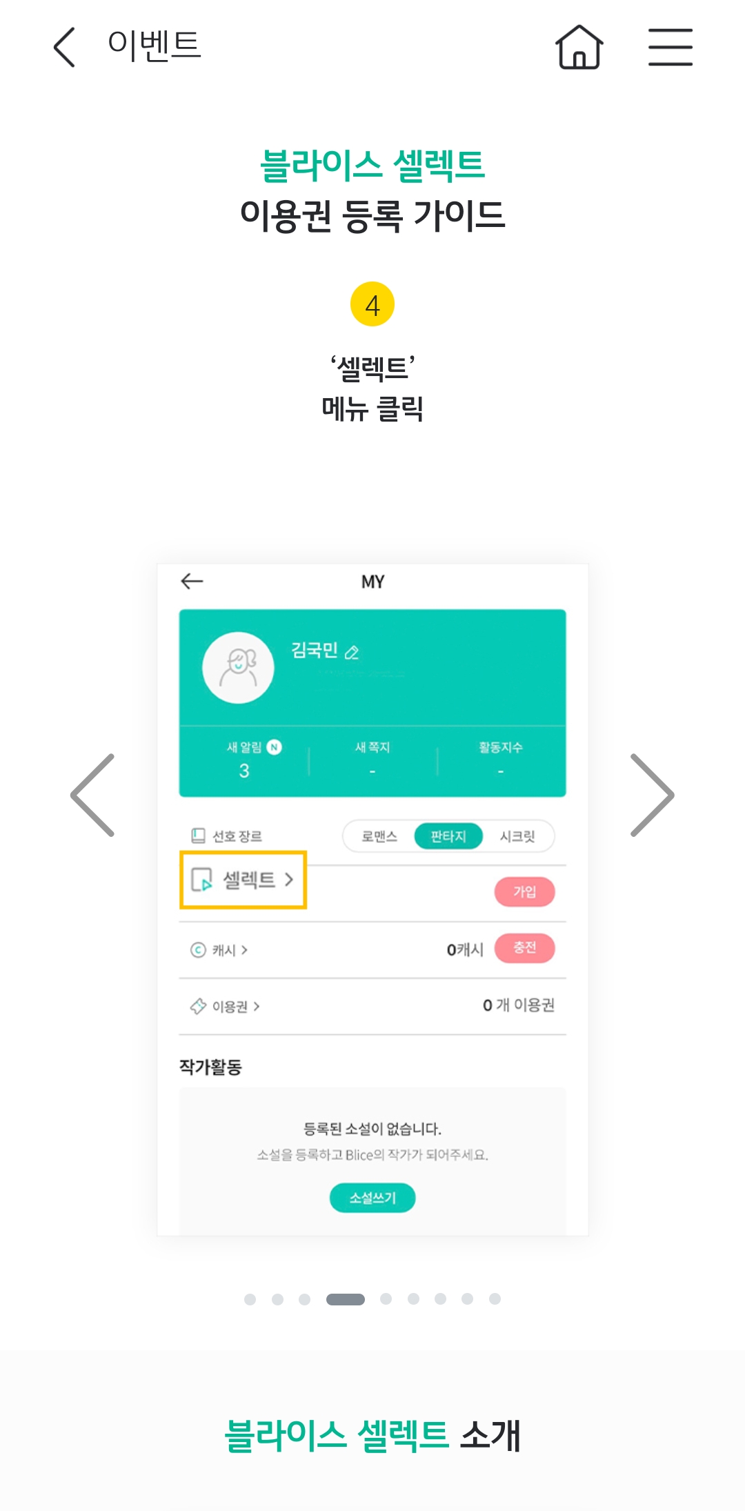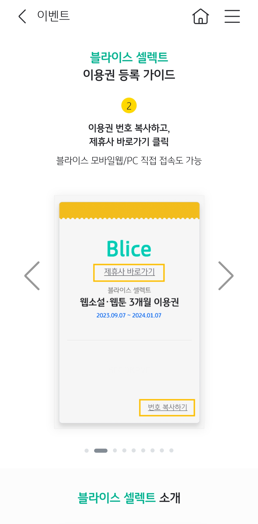 KB국민은행 X 블라이스 셀렉트 웹툰 웹소설 3개월 무료 이용권 등록방법입니다