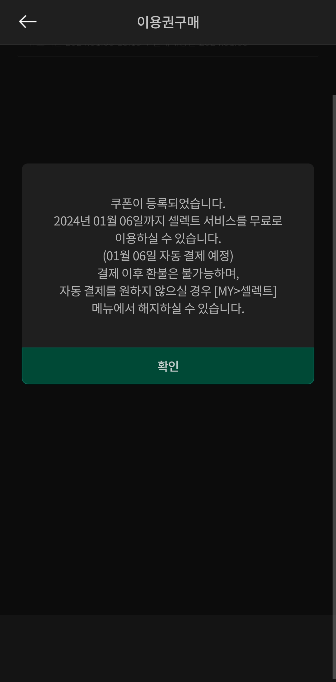 3개월 무료 이용권 등록이 완료되면 다음과 같이 뜨는데