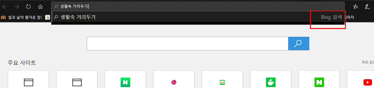 엣지 프라우저에는 기본검색엔진이 Bing으로 되어 있습니다