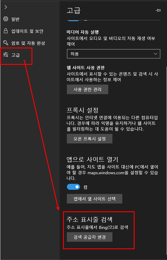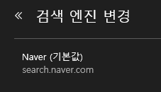 그래서 기본 검색엔진인 Bing에서 원하는 검색엔진으로 변경하는 방법은
