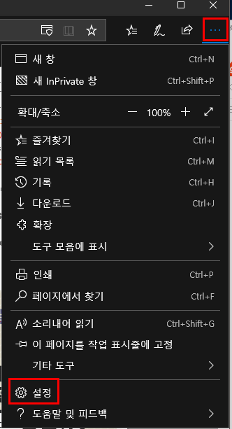 브라우저 우측상단에 점세개 저부분을 눌러서 설정으로 들어간 다음