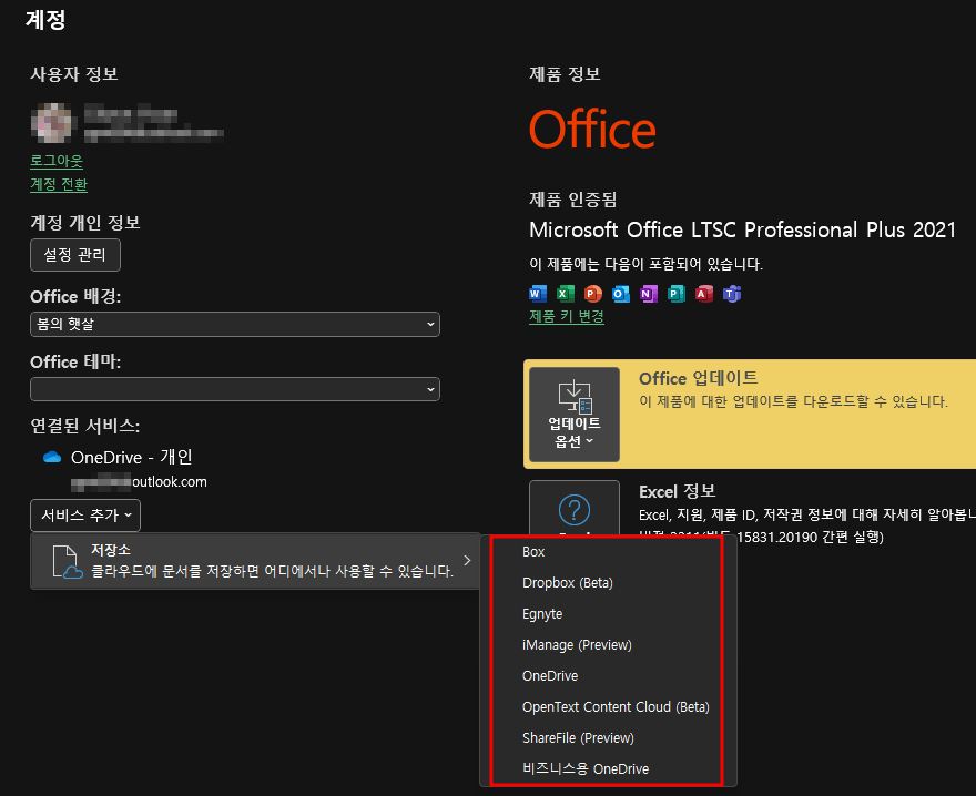 그 외 오피스는 다른 클라우드 저장소를 지원합니다.