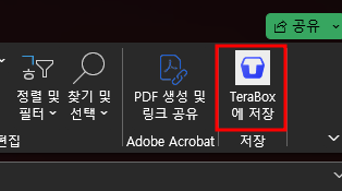 엑셀을 사용하다 발견한건데 메뉴끝에 Terabox 탭이 보입니다