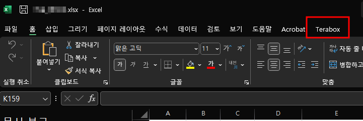엑셀을 사용하다 발견한건데 메뉴끝에 Terabox 탭이 보입니다