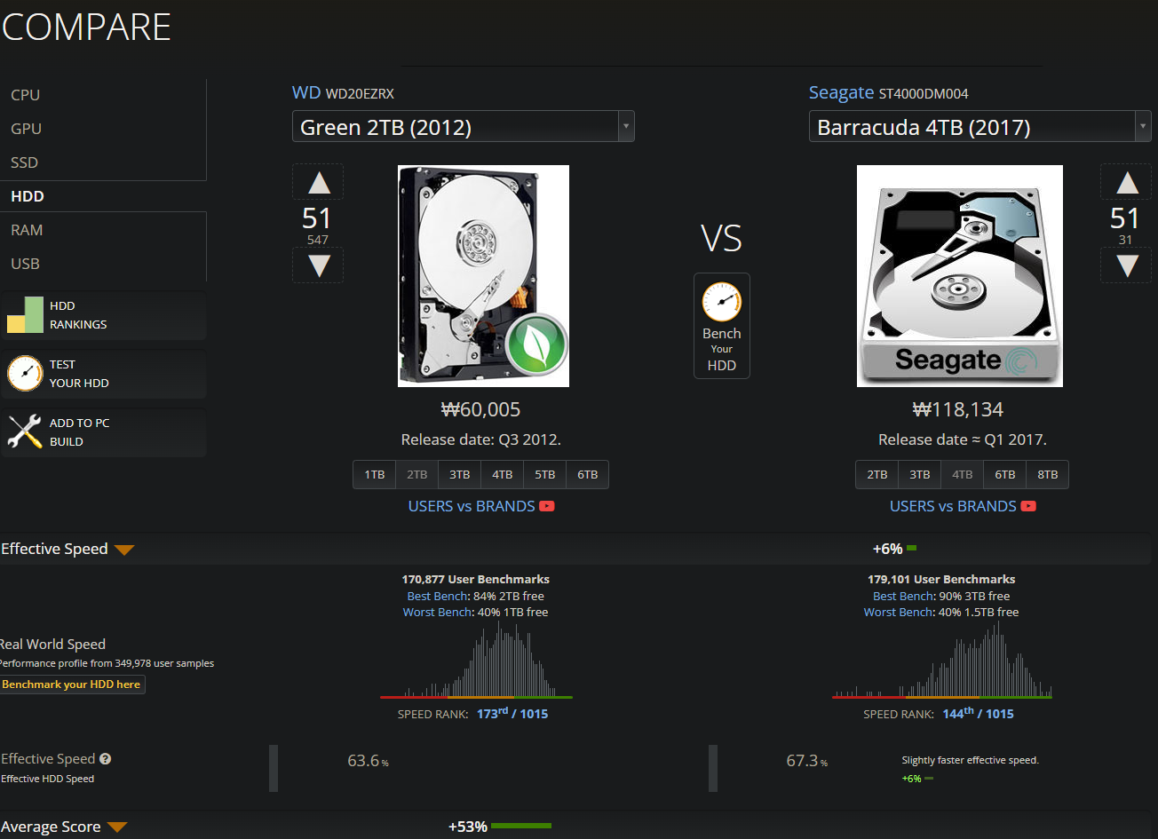 이곳으로 들어가서 우선 비교하고 싶은 제품군을 선택합니다 (저는 PC에 있는 HDD를 비교해 보겠습니다)