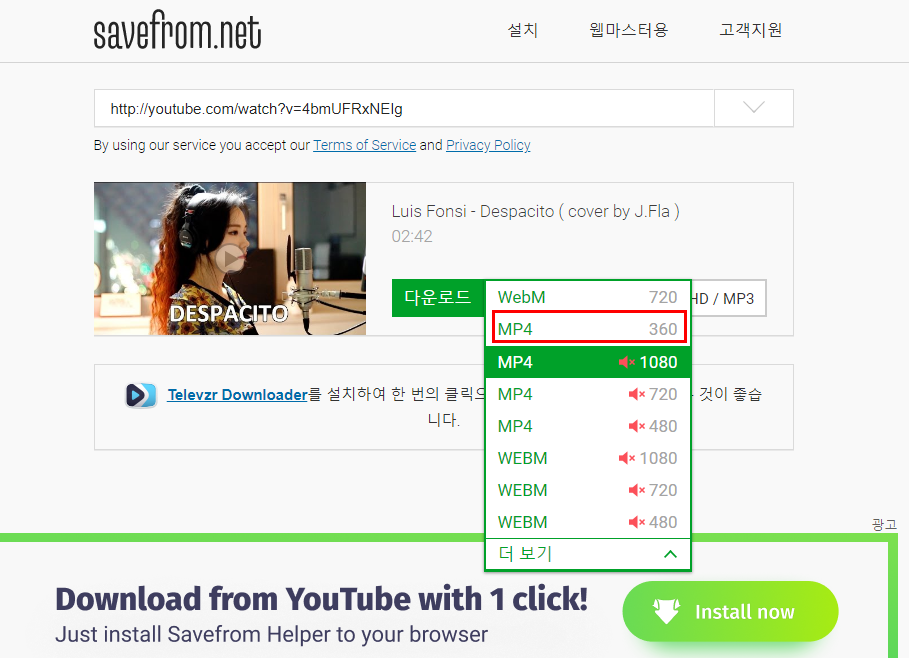 savefrom.net이라고 영상을 다운로드할 수 있는 페이지로 넘어갑니다